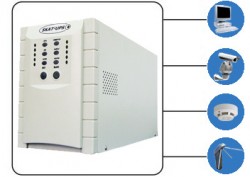 SKAT-UPS 1000 - более подробно Обеспечить бесперебойную работу систем безопасности на особо важных объектах одна из важнейших задач, так как проблемы с электропитанием (отключение, скачки напряжения и т. п.) могут привести к последствиям, материальный ущерб от которых будет намного больше стоимости всей системы ОПС, ССТV, СКУД, ПЦН и т. д. Организовать качественное питание этих систем можно с помощью специализированного источника бесперебойного питания SKAT-UPS1000. Его основными преимуществами перед обычными источниками питания — высокая мощность — до 1000 ВА и возможность обеспечить ДЛИТЕЛЬНЫЙ резерв системы — зависит исключительно от ёмкости АКБ SKAT-UPS1000 предназначен для защиты электрооборудования пользователя от любых неполадок в сети, включая искажение или пропадание напряжения сети, отклонение частоты питающего напряжения, а также подавления высоковольтных импульсов и высокочастотных помех, поступающих из сети. Он выполнен по технологии On-Line (с двойным преобразованием энергии) и обладает наиболее совершенной технологией по обеспечению качественной электроэнергией без перерывов в питании нагрузки при переходе с сетевого режима на автономный режим, и наоборот. Особенности